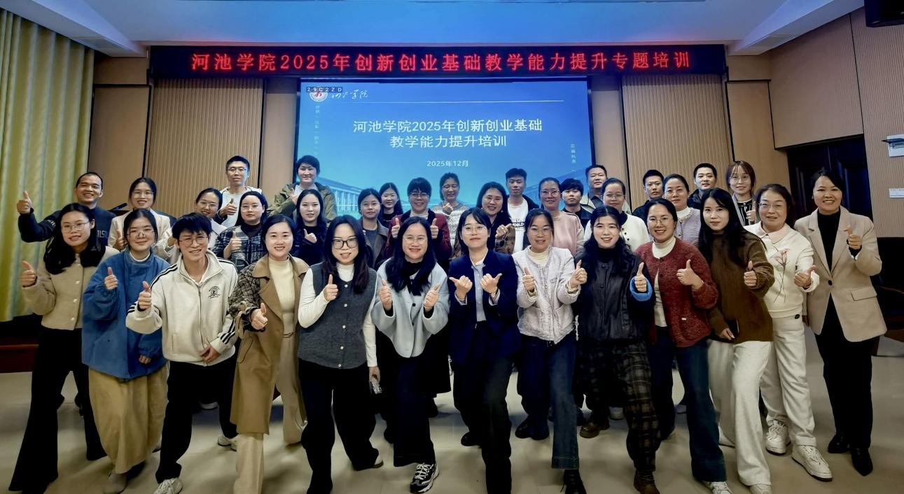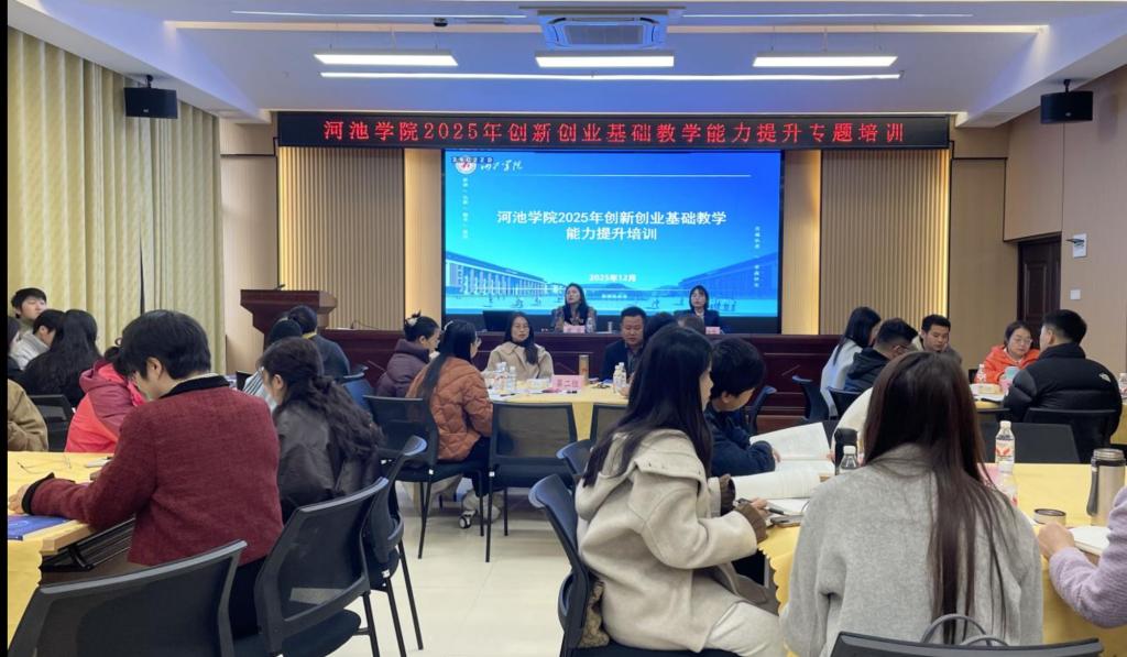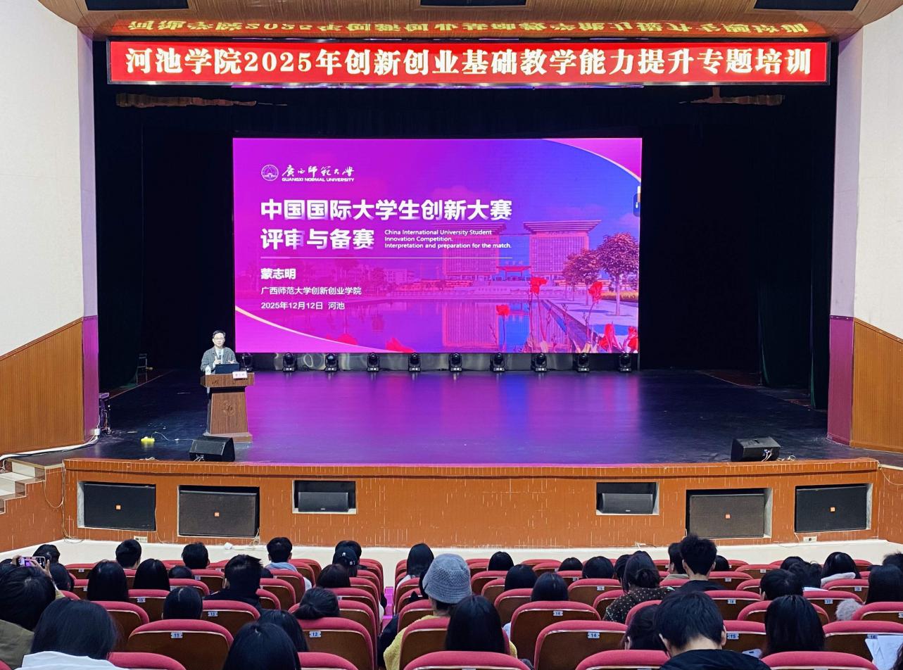 12月11日—12日,我校举办2025年创新创业基础教学能力提升专题培训。培训邀请广西师范大学创新创业学院院长、成果转化中心主任蒙志明,教学科研部部长廖芳担任主讲。45名“双创”教师、近500名学生参加。